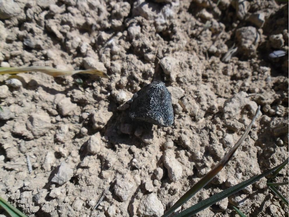 Physical characteristics: The first specimen (5.7 g) was found in an olive grove by Thomas Grau on June 3 at 39°21.893’N, 3°31.321’W. Other specimens were found nearby on June 8-9 by Thomas Grau (4.5 g, 3.0 g, 3.8 g, and 5.8 g), on June 13 by Jose Vicente Casado (2.7 g), on July 4 by Jose Maria Madiedo (Univ. Huelva) (6.0 g) and Jose Vicente Casado (1 g), and on July 11 by Francisco Ocaña (5.9 g). Another 22 pieces have been found since then, and the total mass recovered is 0.5 kg. All the specimens exhibit wrinkled and extremely shiny black fusion crusts.