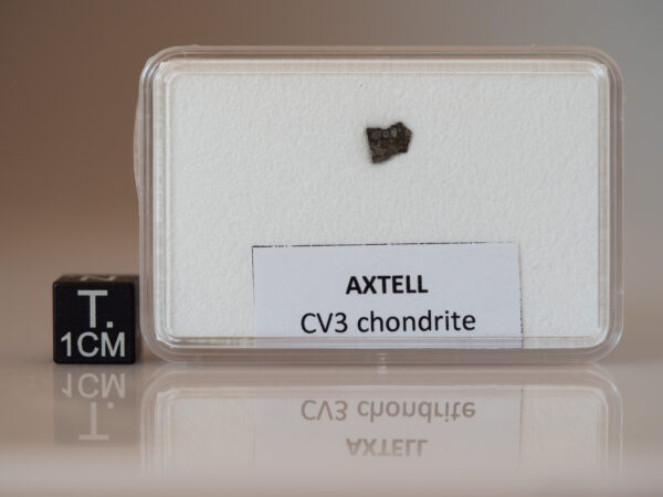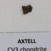 A single stone of 6.2 kg was found while ploughing. Classification and thin section analysis by Simon et al. (1994a) and Casanova and Simon (1994): olivines and low-Ca pyroxenes average Fay and Fs1, respectively, texture and oxygen isotope ratios (anlysis R. N. Clayton) are much like those of Allende. However, Axtell shows pervasive weathering of matrix minerals and has a 60Co concentration and refractory inclusions that are unlike those of typical Allende specimens. Natural and induced thermoluminescence data are also consistent with this meteorite not being paired with Allende; see Simon et al. (1994b). Distribution: 670 g and type sections at Field Museum of Natural History, Chicago; 740 g, James Schwade; 331 g, Marlin Cilz; 322 g, Museum National d`Histoire Naturelle, Paris; 264 g, Blaine Reed; 165 g, Max-Planck-Institut fair Chemie, Mainz. Discovery details: Blaine Reed, 907 County Road 207 # 17, Durango, Colorado 81301, USA.
