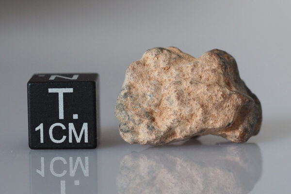 Physical characteristics: The material occurs in two different varieties. Samples found on the surface have light brown exteriors. The ones found buried have whitish exteriors with orange caliche. All stones lack fusion crust. Interiors are predominately gray with dark gray and white clasts. Some metal grains are macroscopically visible.