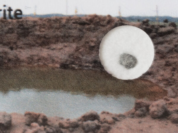 Physical characteristics: Most specimens are without fusion crust and have a gray color with some metal and chondrules visible, although the chondrules are not easily observed. At least one specimen had two different lithologies, the second white in color, indicating it is a breccia. Numerous black shock veins, often on more than one face of a specimen, were observed. At least one large (~2 cm) metal grain was also recovered, with a thin layer of stone attached to it.
