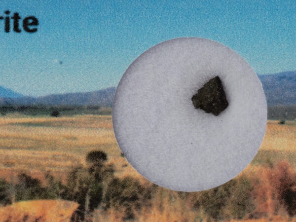 What you get: this 0.019g fragment, a plastic box, a label and signed Certificate of Authenticity.