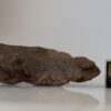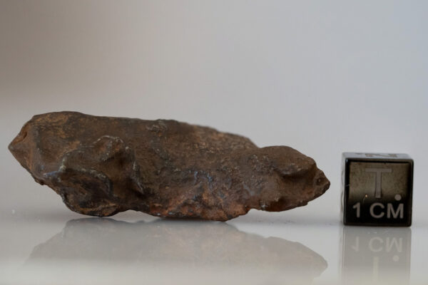 Physical characteristics: A 634 g type specimen, measuring 88 × 70 × 55 mm, is flattened and jagged shrapnel with a rough, dark-brown external surface. The surface originally sitting in the desert soil shows some oxy-hydroxides due to terrestrial weathering.
