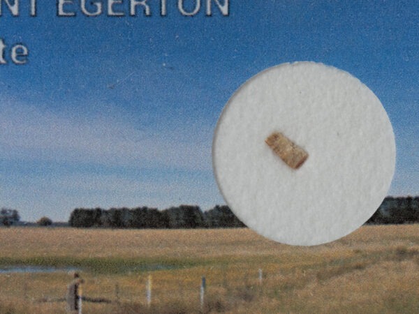 Mt Egerton is located approximately 200 kilometres north-west of Meekatharra, or 80 kilometres east south-east of Mt Augustus, on Woodlands Station, in remote hilly semi arid country. The initial 1.7 kg meteorite fragment was discovered by a local propector in 1941, 15 kilometres north east of Mt Egerton. Subsequent searches located thousands of small fragments under 1 gram. It is classed as an anomalous Aubrite meteorite where enstatite is the primary metal discoloured over time by weathering. The meteorite is composed of centimetre sized enstatite crystals .